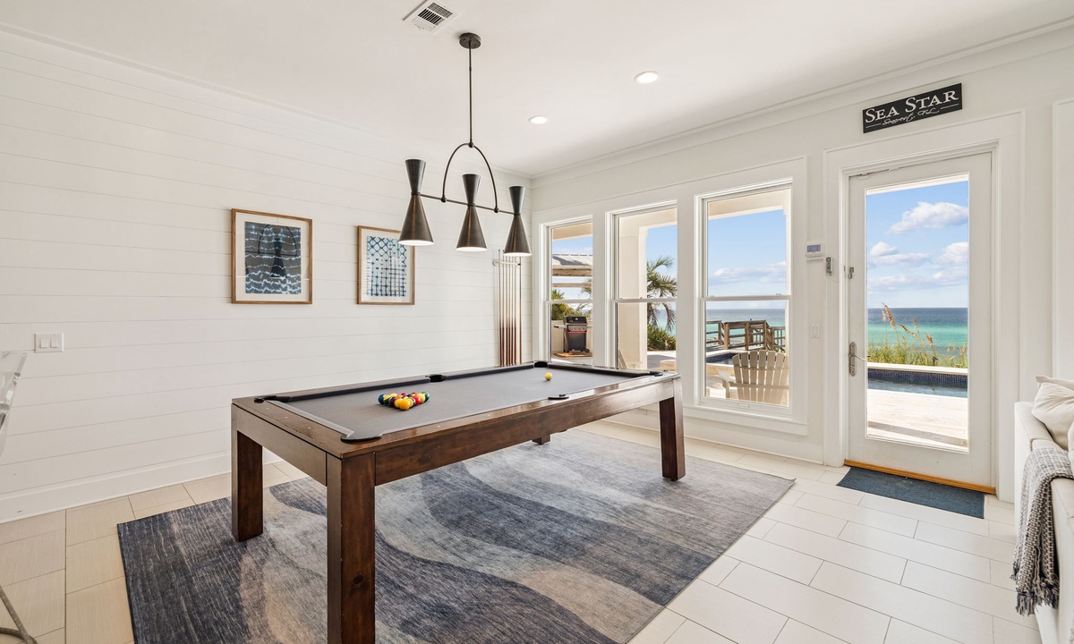 Having been to the 30A area for 30 years, I can easily say (and my 12 family members agreed) this was the best house we have ever stayed in. The pictures are exactly what the house looks like. The layout is perfect and we always felt we had plenty of room. The extras - pool table, ping pong, arcade game, puzzles - all made it easy for people to entertain themselves. The kitchen is well stocked and we cooked every night. Aesthetically, the house is beautiful and not kitschy at all. Every room is serene and it was easy to keep picked up and clean. Of note, we have often found that there A/C is inadequate in houses we have rented. That is not the case here. The house stayed perfectly cool And comfortable the entire week Ceiling fans in the bedrooms were so nice as well. The pool and hot tub are amazing. And the beach chair service was perfect as well. We are hoping to rent the house again next year. I cannot say enough about how much we needed this escape from our day to day reality, and are so thankful we were able to restore ourselves at Sea Star in Seacrest Beach.