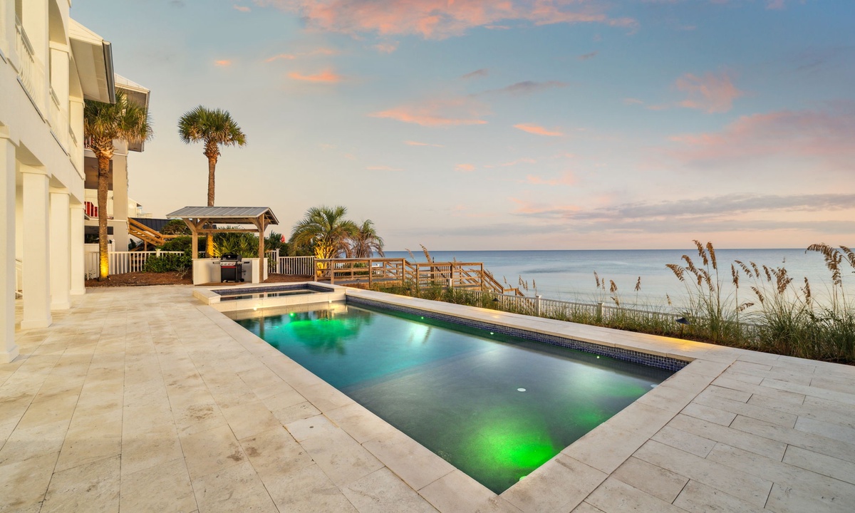 30A ESCAPES presents…“Sea Star,” your ultimate Seacrest vacation rental! This exquisite and freshly renovated 7-bedroom Gulf-front home offers panoramic views, a private oceanside pool deck, daily beach setup year around, and direct, private beach access. Enjoy a professionally designed interior, game room, elevator and 10 bikes to explore nearby gems like Alys and Rosemary Beach. Perfect for upscale group getaways or family gatherings! Learn more below…👇