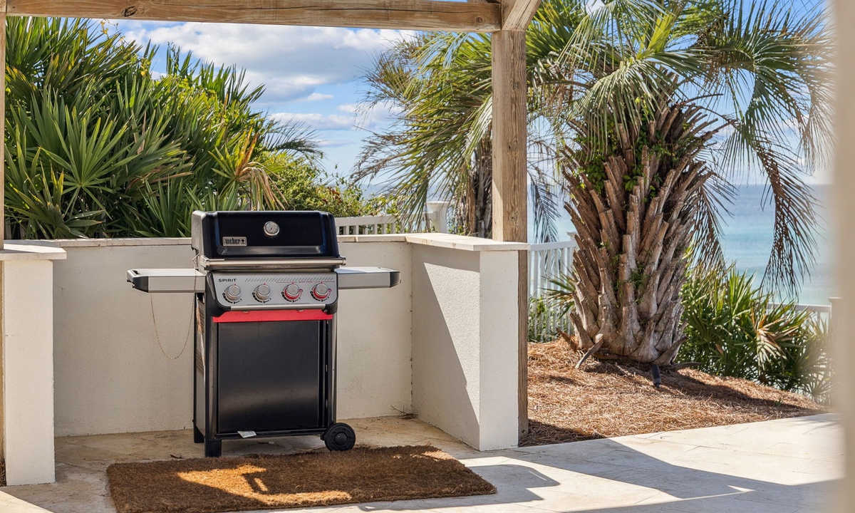 There is an outdoor grill on this property It is right off the pool deck near the spa area.