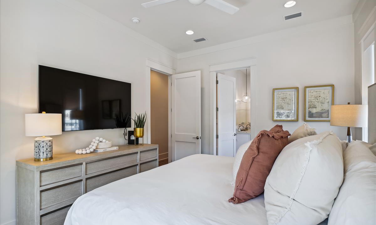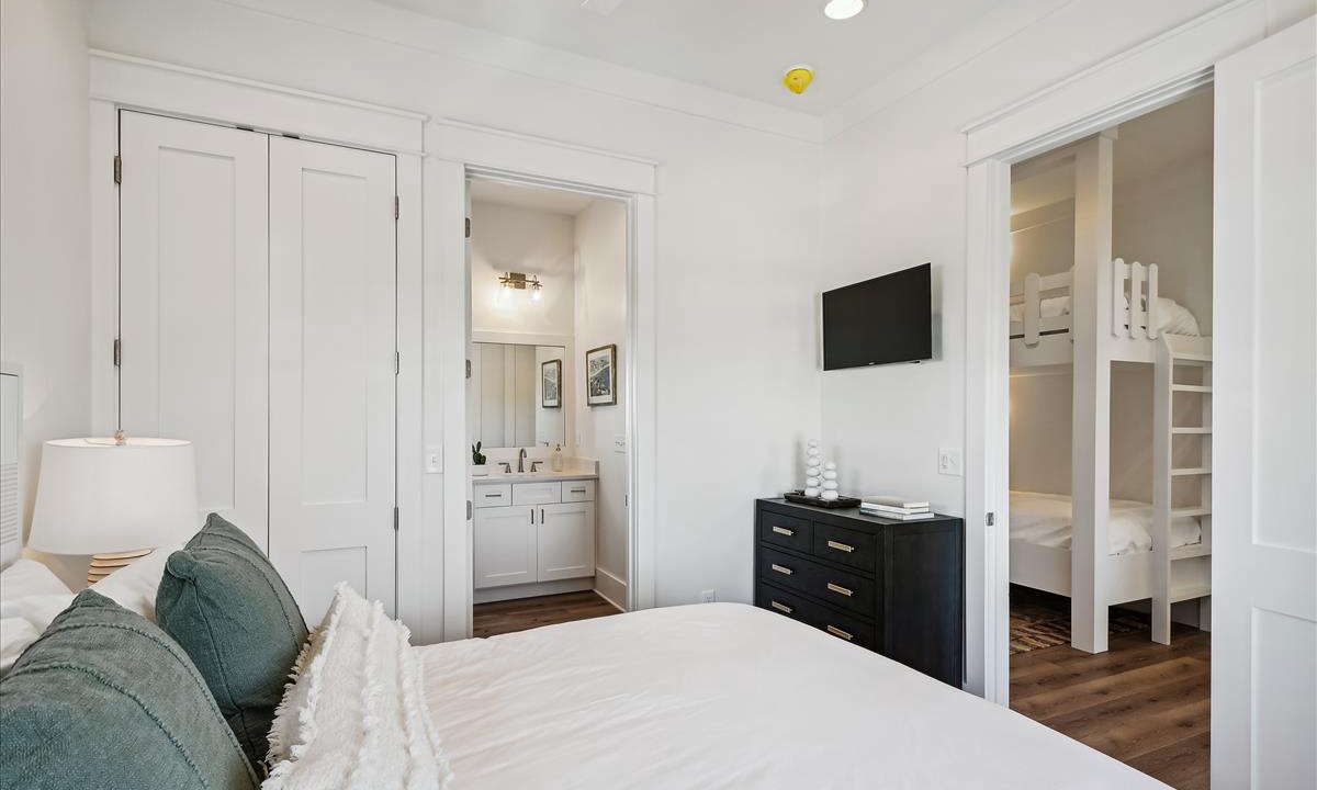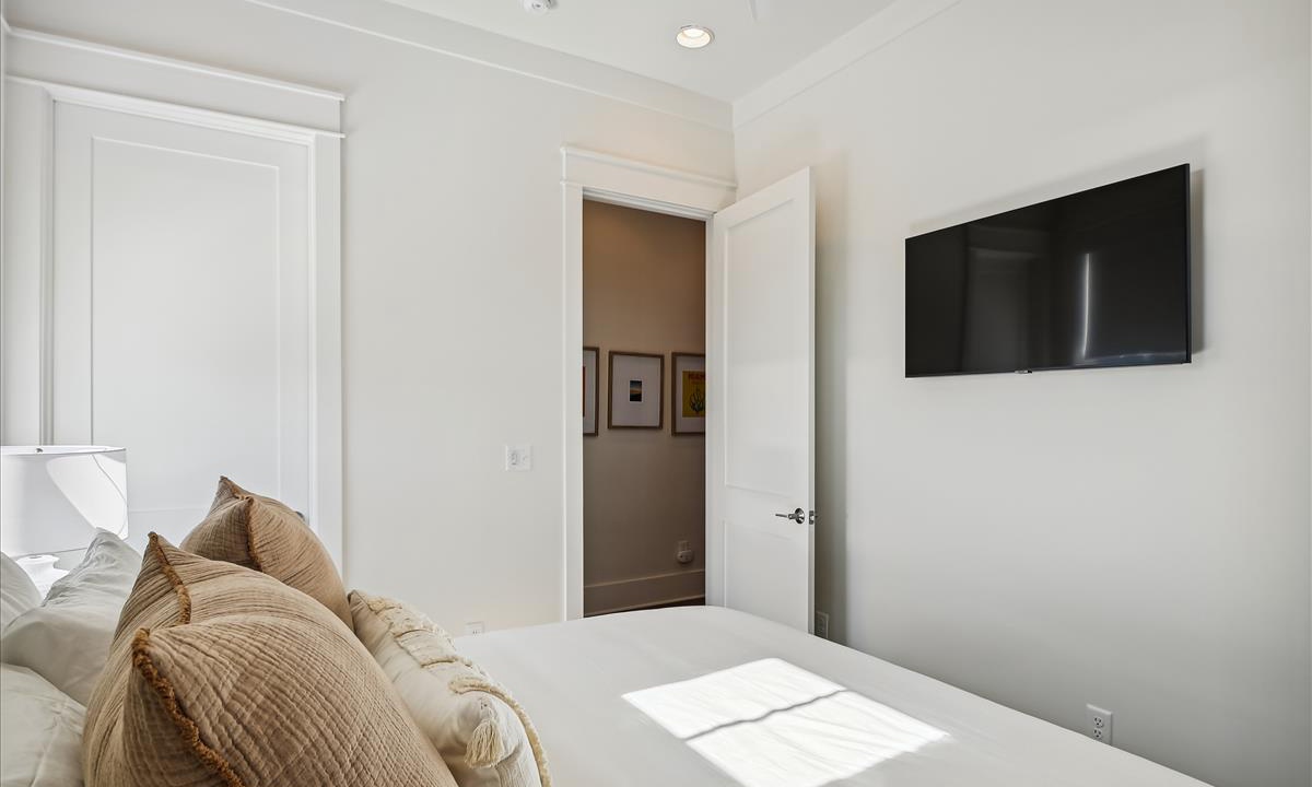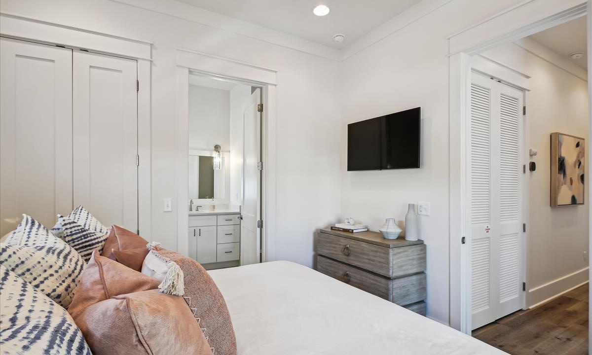 Every bedroom in this new construction home is equipped with comfortable mattresses, hotel-grade linens, and smart TVs.