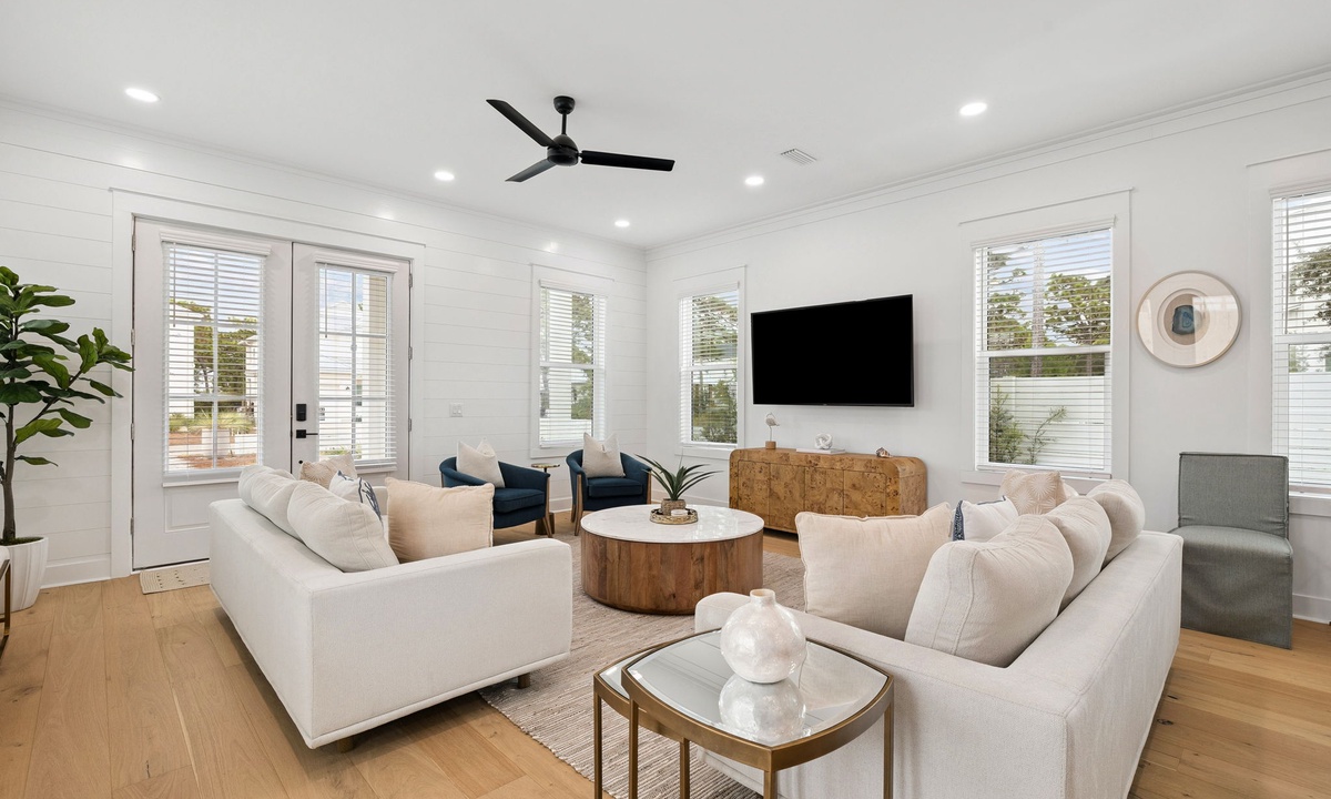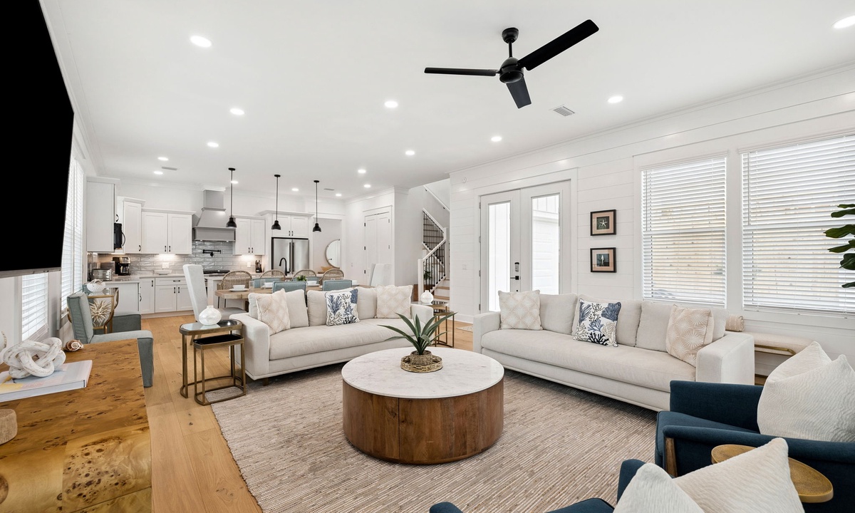 *** LIVING AREA ***The first-floor living area is airy, coastal and curated for connection. With plush seating, plenty of natural light and easy access to the backyard, this space is ideal for gathering after a sun-filled day.