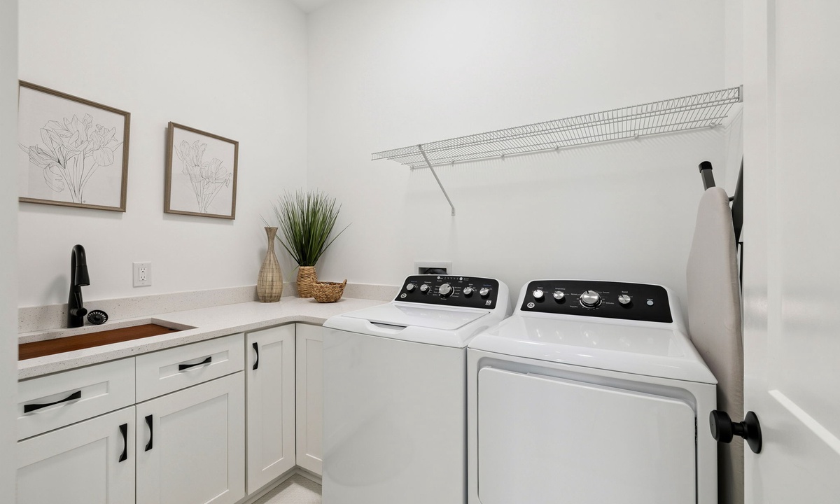 - Laundry Room: Full-size washer and dryer for easy cleanups