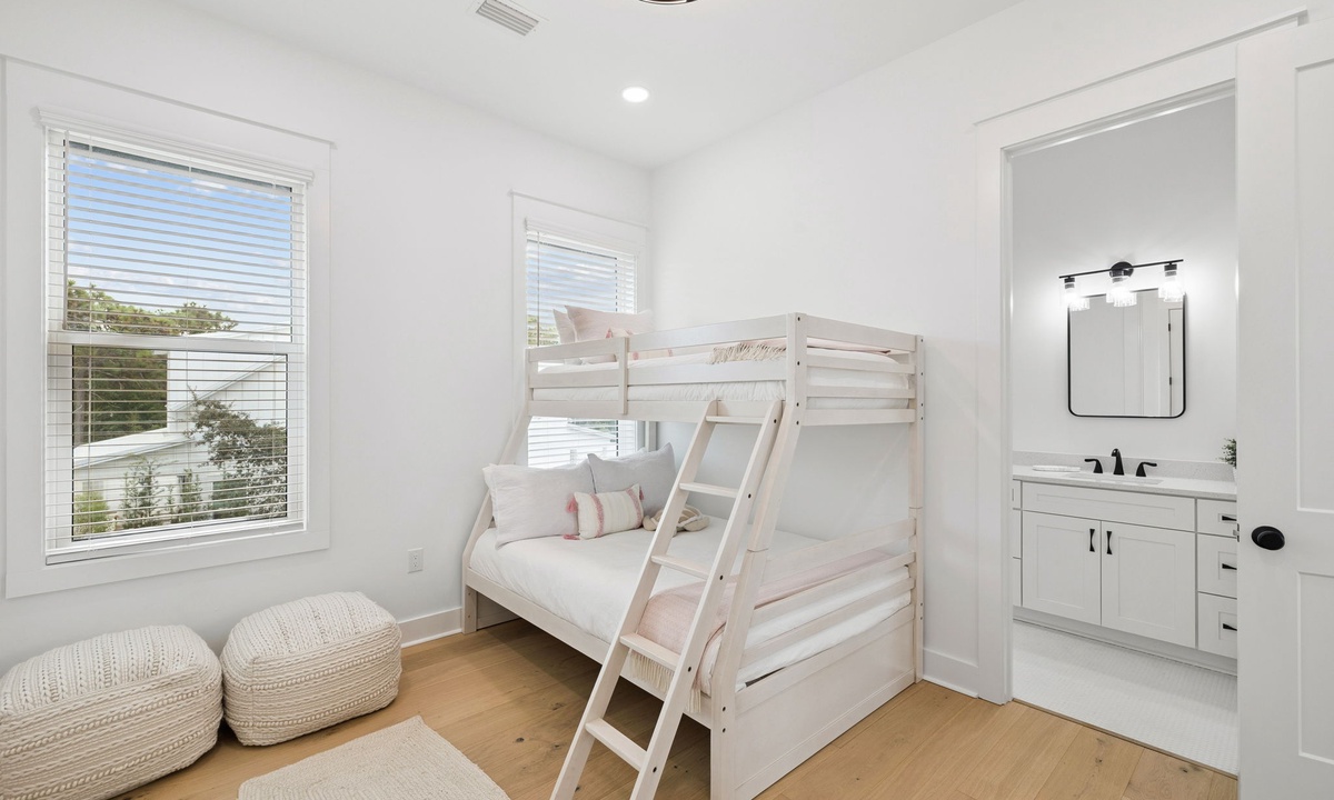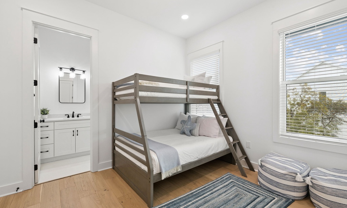 - Bunk Room: Twin-over-Full bunk and En-Suite with single vanity and shower/tub combo
