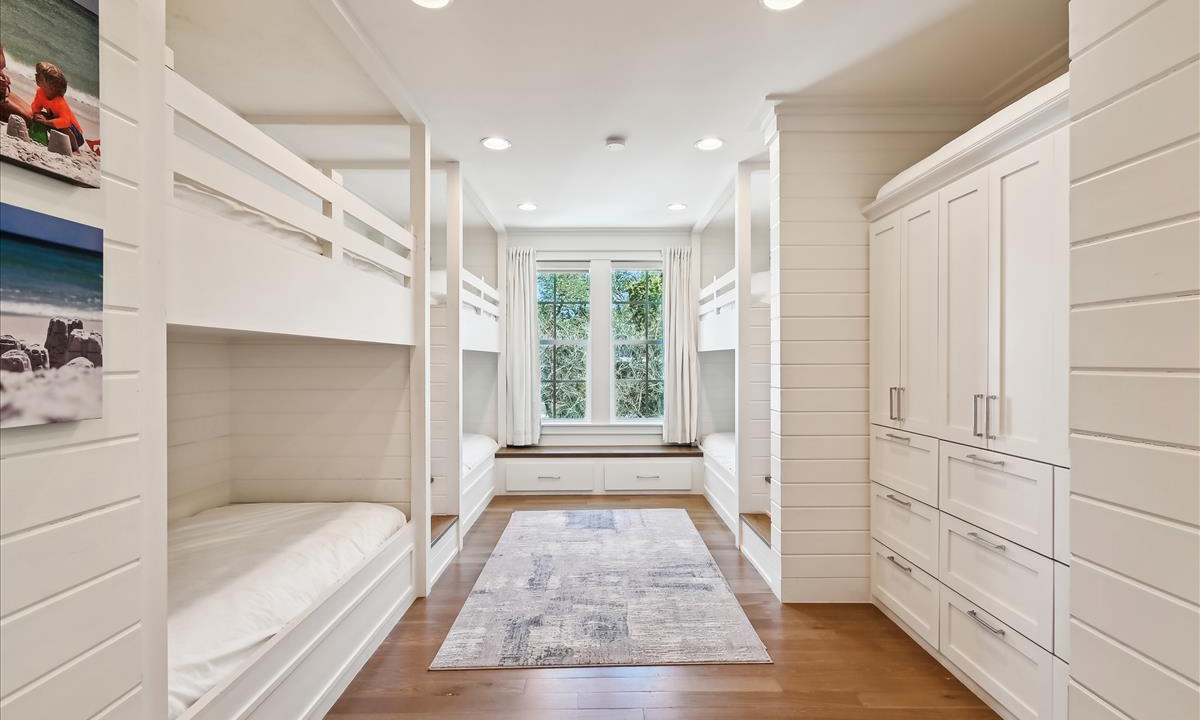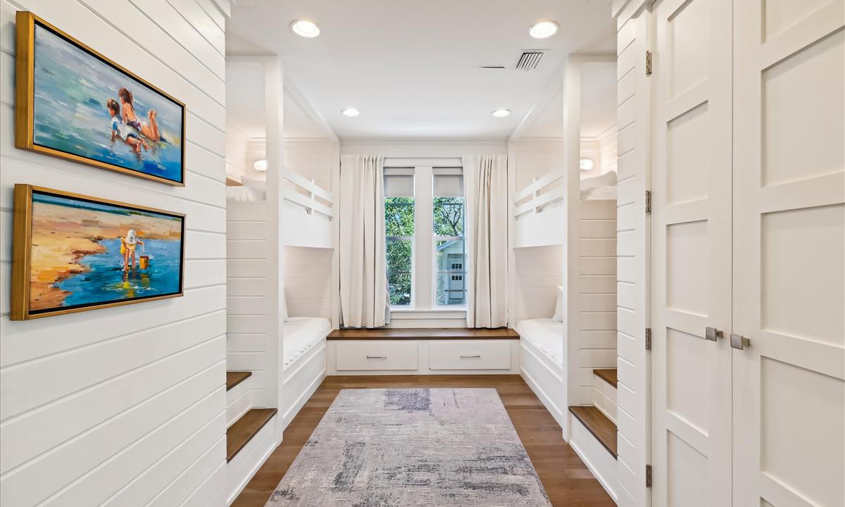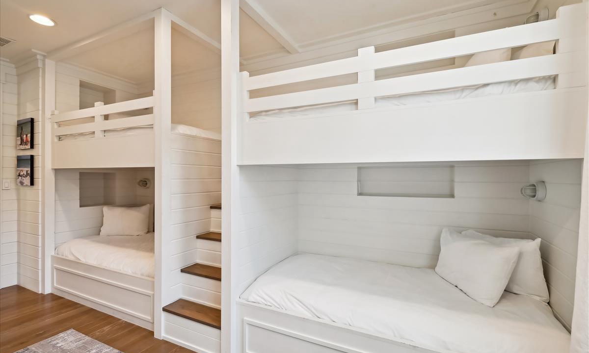 - Twin Bunk Room: Sleeps 4 in custom twin bunks with shared hall bathroom