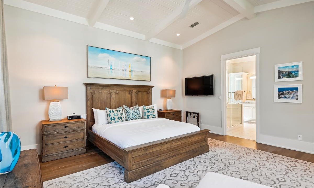 - Primary King Suite: King bed, flat-screen TV and En-suite with walk-in shower and dual vanities