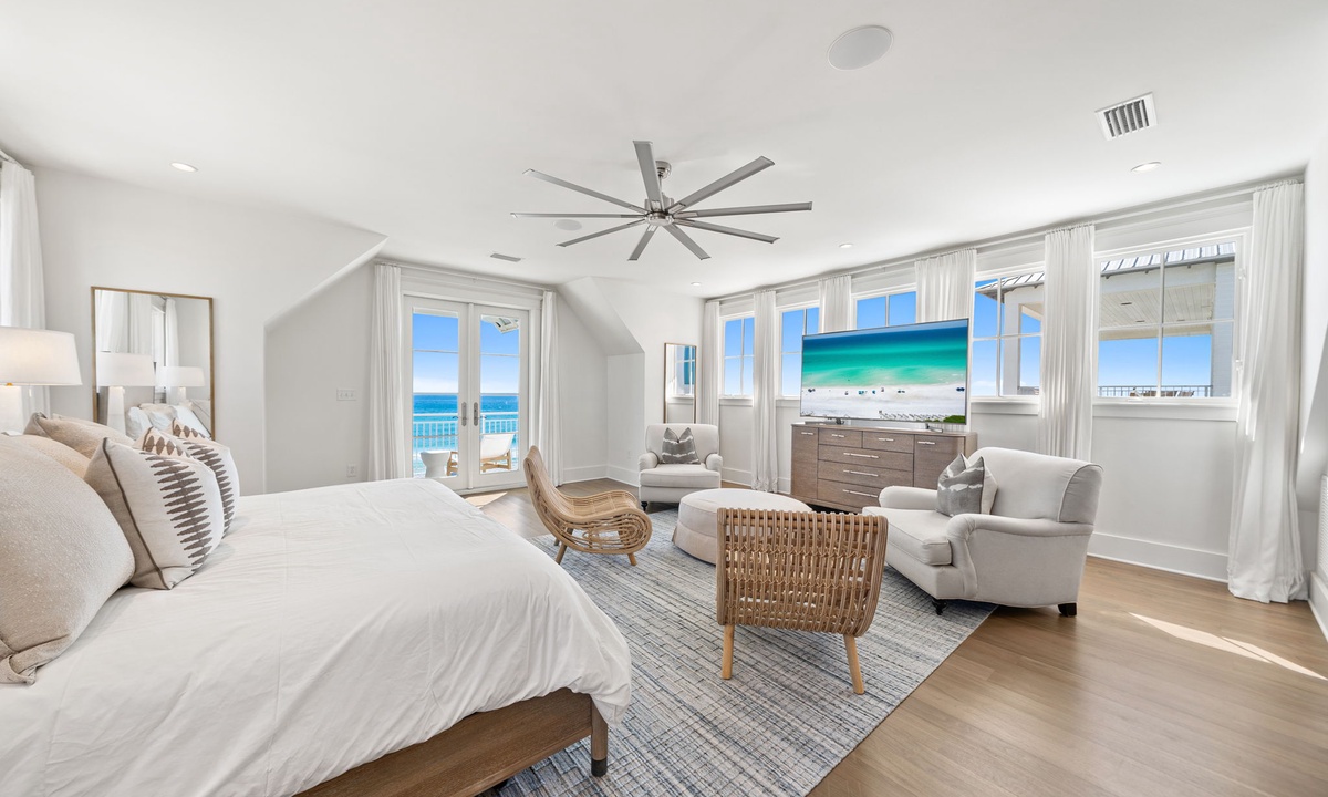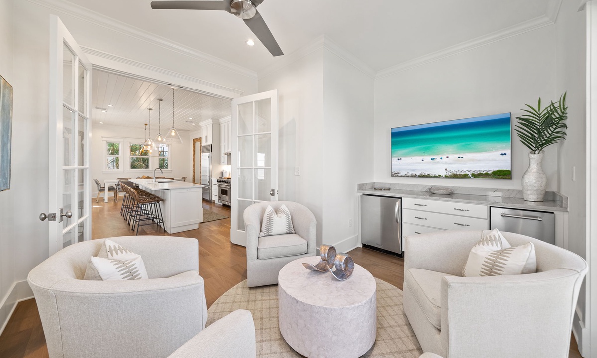 ⭐ "The beach and sunset views were absolutely breathtaking. Having access to a private beach was such a luxurious touch!" – William C."The Odessa" is a stunning retreat that perfectly combines coastal elegance with family-friendly comfort. Featuring a picturesque and spacious setting, this home is designed to impress. The open-concept main living area boasts breathtaking Gulf views, a cozy gas fireplace, and a sleek flat-screen TV, creating the ideal space for relaxation and entertainment. On the first floor, an additional living area with a stylish wet bar opens directly to the porch and pool, offering seamless access to ultimate relaxation and memorable moments by the water. On the second floor, you'll find a cozy sitting room equipped with a mini fridge and a ceiling fan, perfect for unwinding after a day in the sun. Every detail of "The Odessa" is crafted to elevate your coastal getaway.