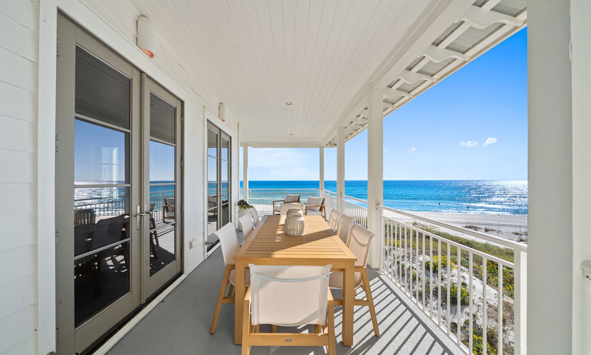 Step onto the luxurious beachside pool deck, complete with a private heated pool and a top-of-the-line gas grill for unforgettable alfresco dining experiences. Unwind on multiple beachfront balconies, each offering breathtaking views. The expansive 2nd-floor balcony features a dining table that comfortably seats 8—perfect for savoring your morning coffee as the sun rises or indulging in dinner while soaking in a stunning sunset. Your ultimate coastal retreat awaits!