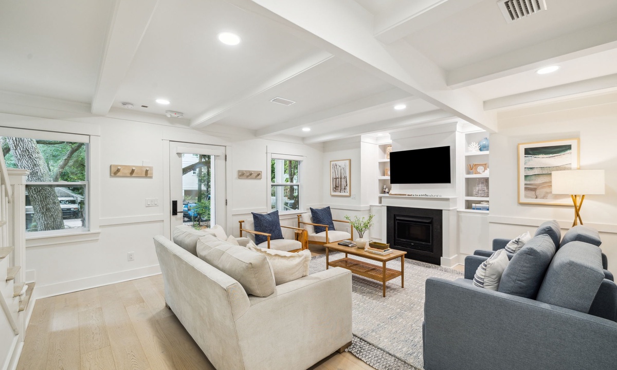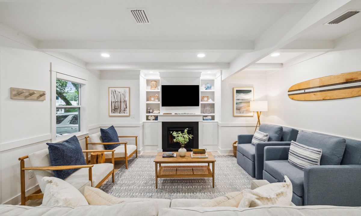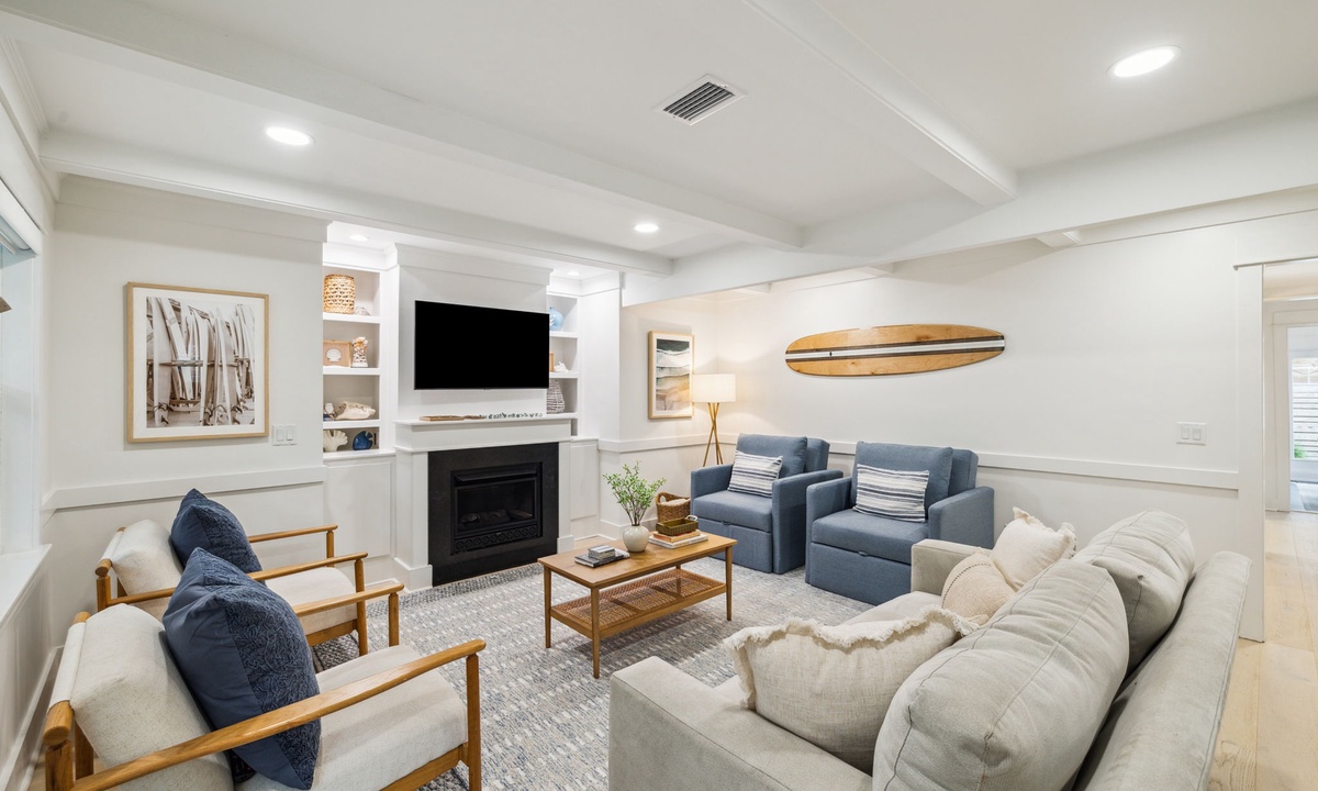 *** HIGHLIGHTS ***Step into a warm and welcoming space where natural light pours through the windows and cozy coastal style sets the tone for your stay. Whether you're gathering for movie night, playing board games, or simply unwinding after the beach, this open living area offers the perfect place to connect and relax.