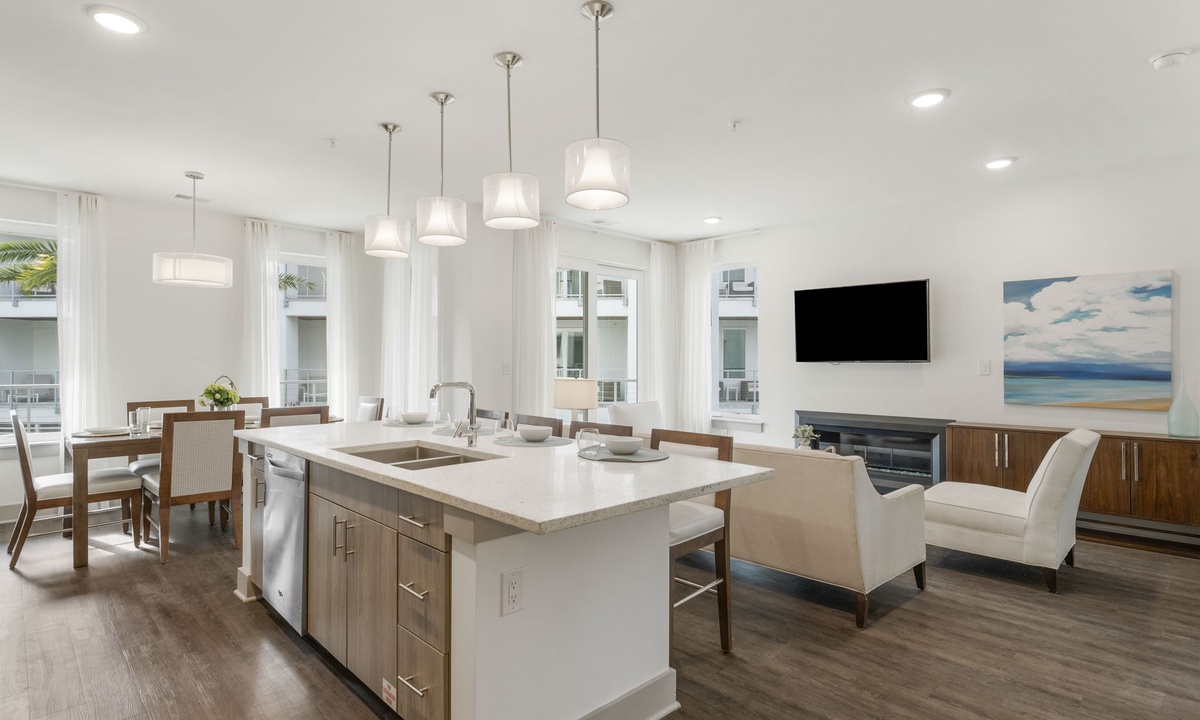 *** HIGHLIGHTS ***Coastal elegance meets comfort in this inviting living area featuring a gas fireplace, flat screen TV, and stylish décor. The open layout and balcony access make it the perfect space for entertaining or relaxing.