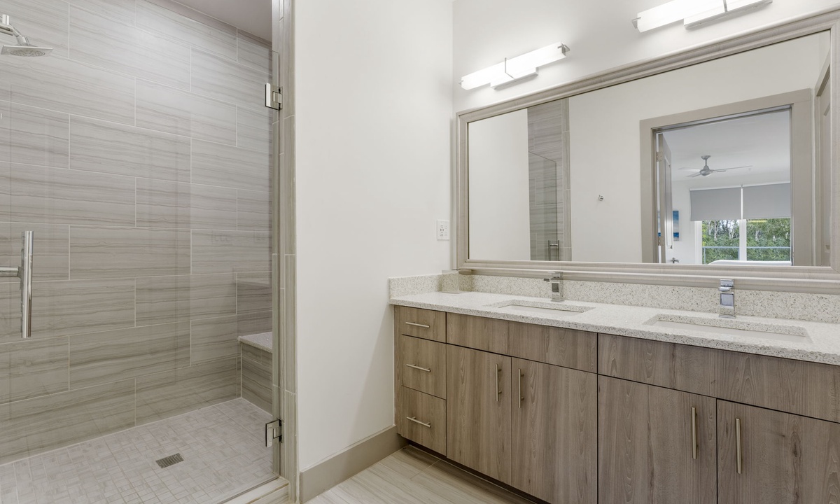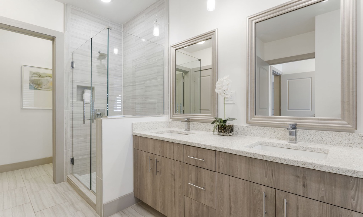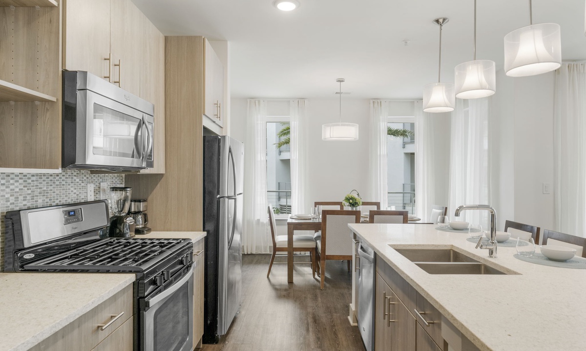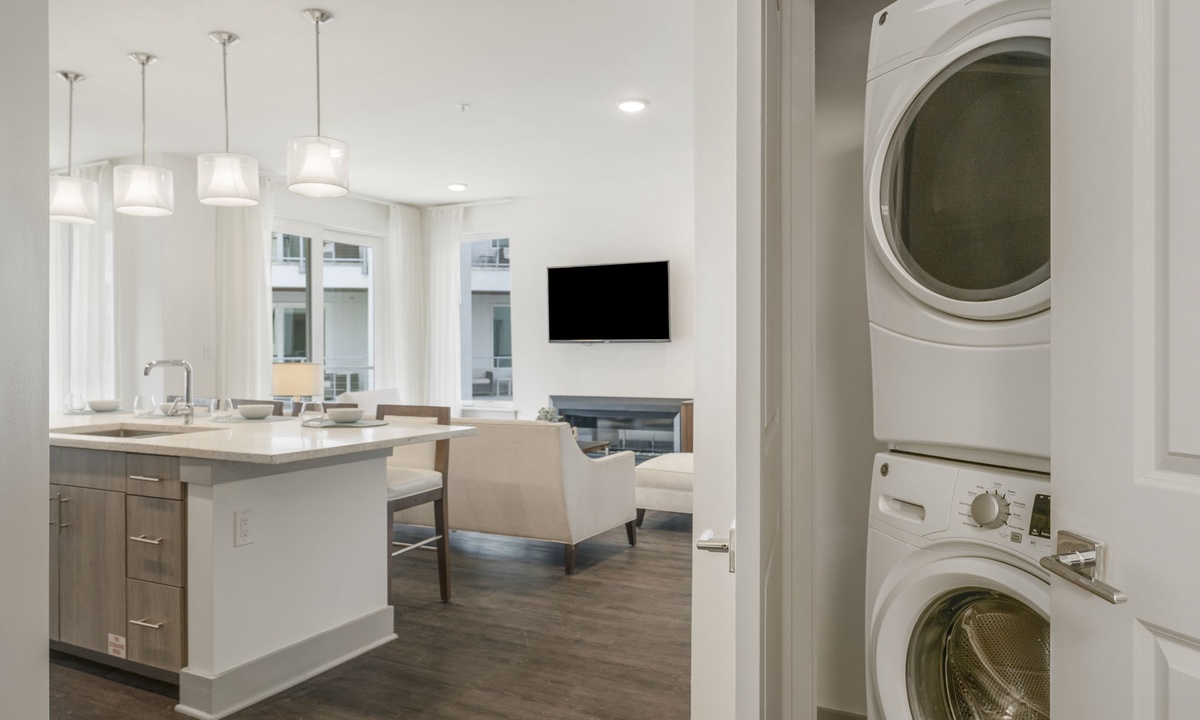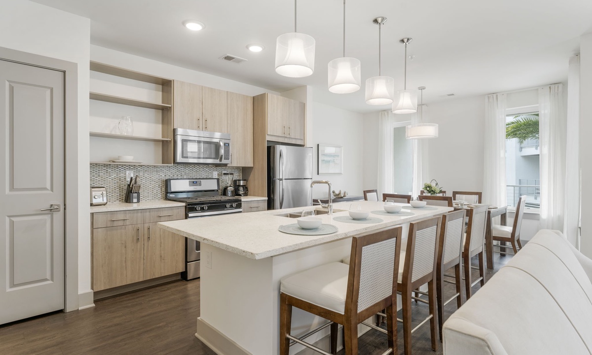 Prepare meals and gather with ease in this beautiful kitchen featuring quartz countertops, stainless steel appliances, and a large island. Whether it’s a quick breakfast or a dinner with friends, there’s room for everyone.