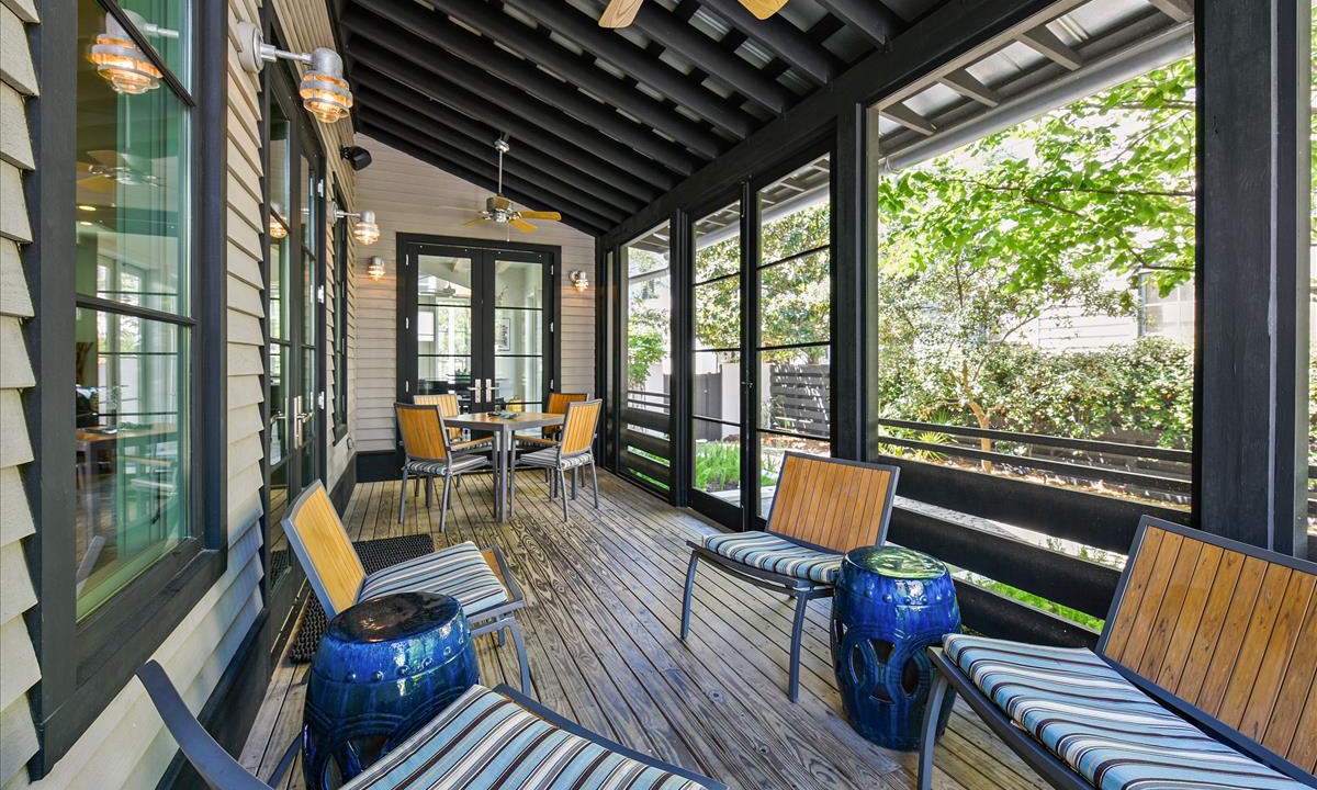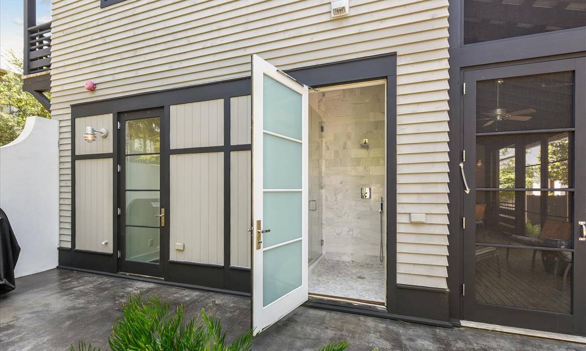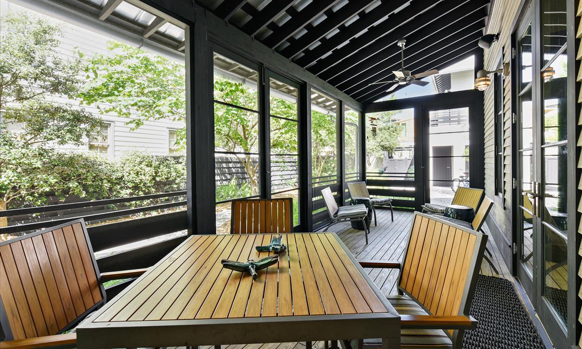 Step into your private courtyard, surrounded by lush greenery—an outdoor sanctuary perfect for grilling, dining, or simply unwinding. The screened porch provides a cozy spot for morning coffee, with a dining and lounging area complete with ceiling fans for added comfort. The outdoor shower is perfect for rinsing off after a day at the beach.