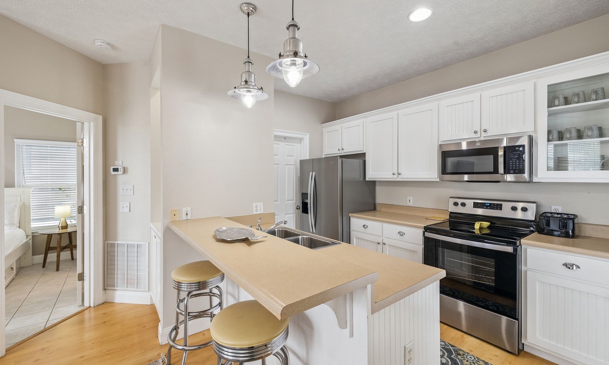 Located on the second floor, the fully equipped kitchen offers everything you need to whip up beach snacks or full meals.