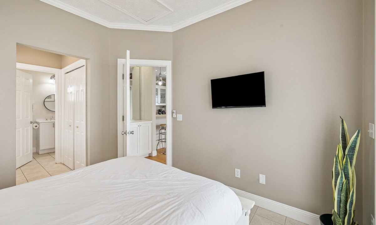 Designed with relaxation in mind, the bedroom and bathrooms offer modern comfort and function.