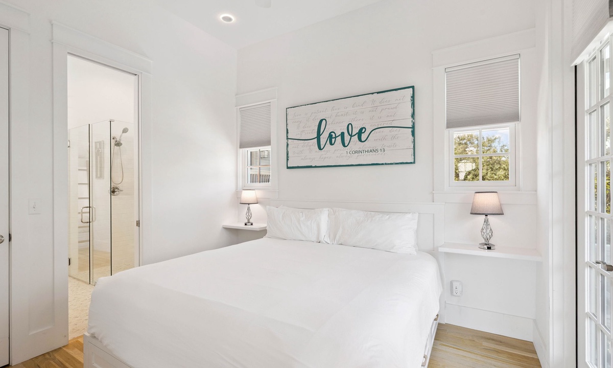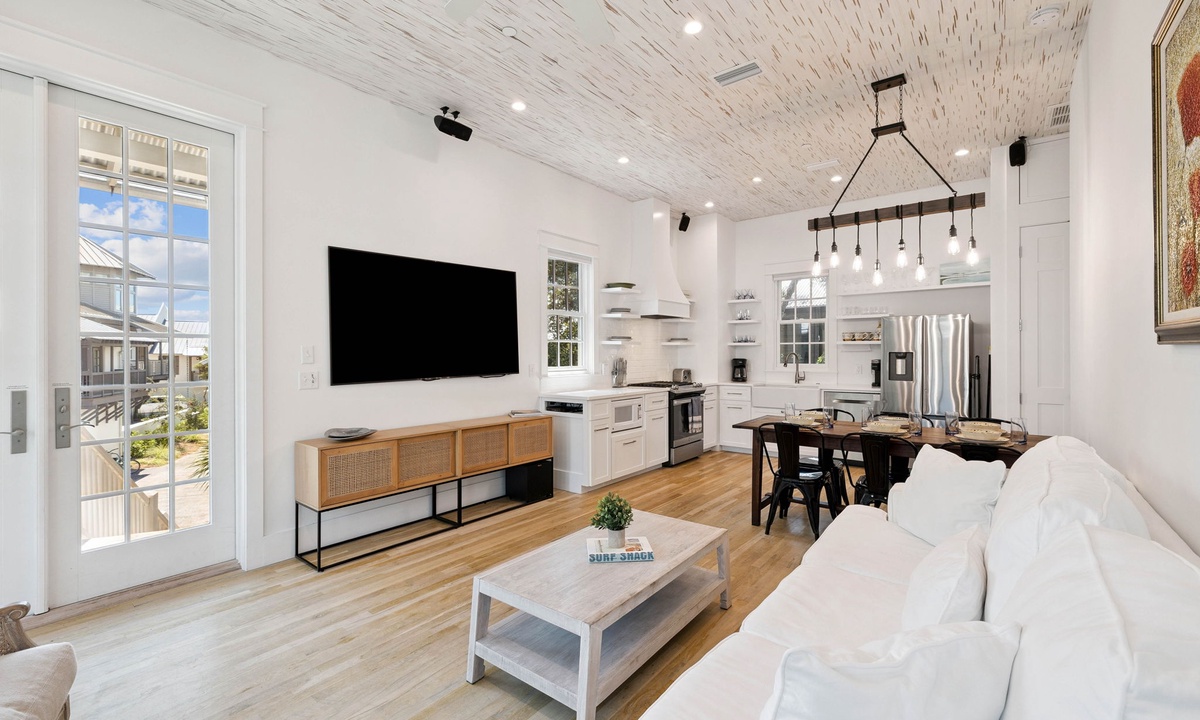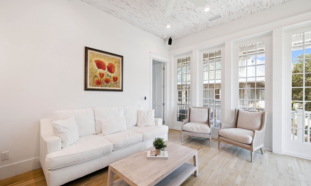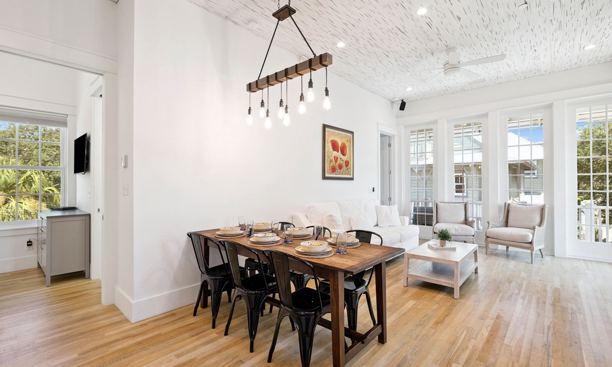 The home is beautiful, clean and comfortable, and sits in the absolute perfect part of town. The Coquina Pool can be seen from the deck. Just walk across the alleyway to the path and you’re there. The beach walkover C is a s1 minute walk from the house. The outdoor shower is heated so if you’re there in cooler weather you can comfortably rinse sand off with the warm shower. You don’t need to use a car for anything unless you need a stop at the grocery store, and Publix is a 5-min drive west on 98. Rosemary Beach is a beautiful and charming town and this house will suit a family of 4 very comfortably.