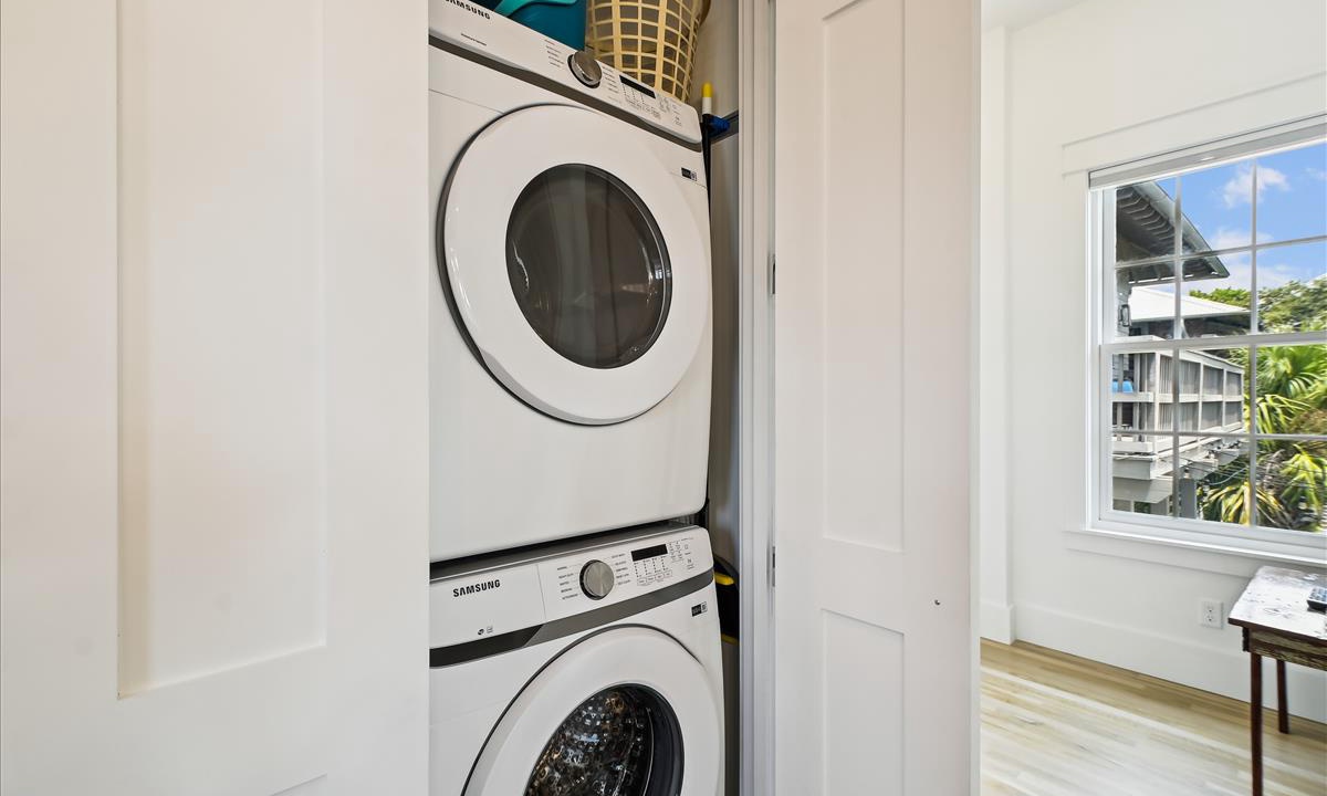 We have stayed in Rosemary many times and this is by far our favorite carriage house. The lay out of the rooms and tall ceilings makes the space feel large. Plenty of drawer space, brand new washer and dryer, outdoor enclosed area to store beach gear, AND the location is awesome. Literally right next to the pool, beach, and shops.