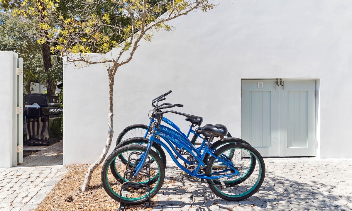 30A ESCAPES presents... “Tuscan Blue,” a charming carriage house in the heart of Rosemary Beach. Just a 2-min walk to the pristine sugar-white sands and 1 min from the Coquina Pool, this stylish retreat offers a well-appointed kitchen, a cozy living and sleeping spaces, a Tesla charging station, and 3 bikes to explore 30A with ease. Ideal for a small family or a couples’ getaway. Learn more below…