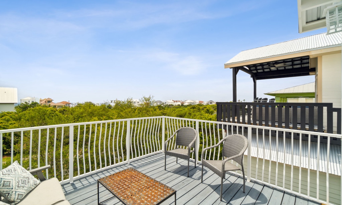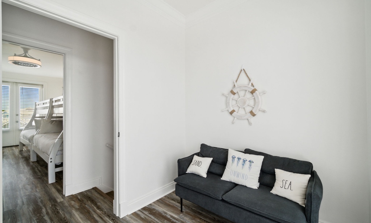 Head up to the third-floor sitting area for even more relaxation. Enjoy a cozy space with a Smart TV and step out onto the balcony for breathtaking Gulf views to enjoy with a beverage of your choice in your hand.