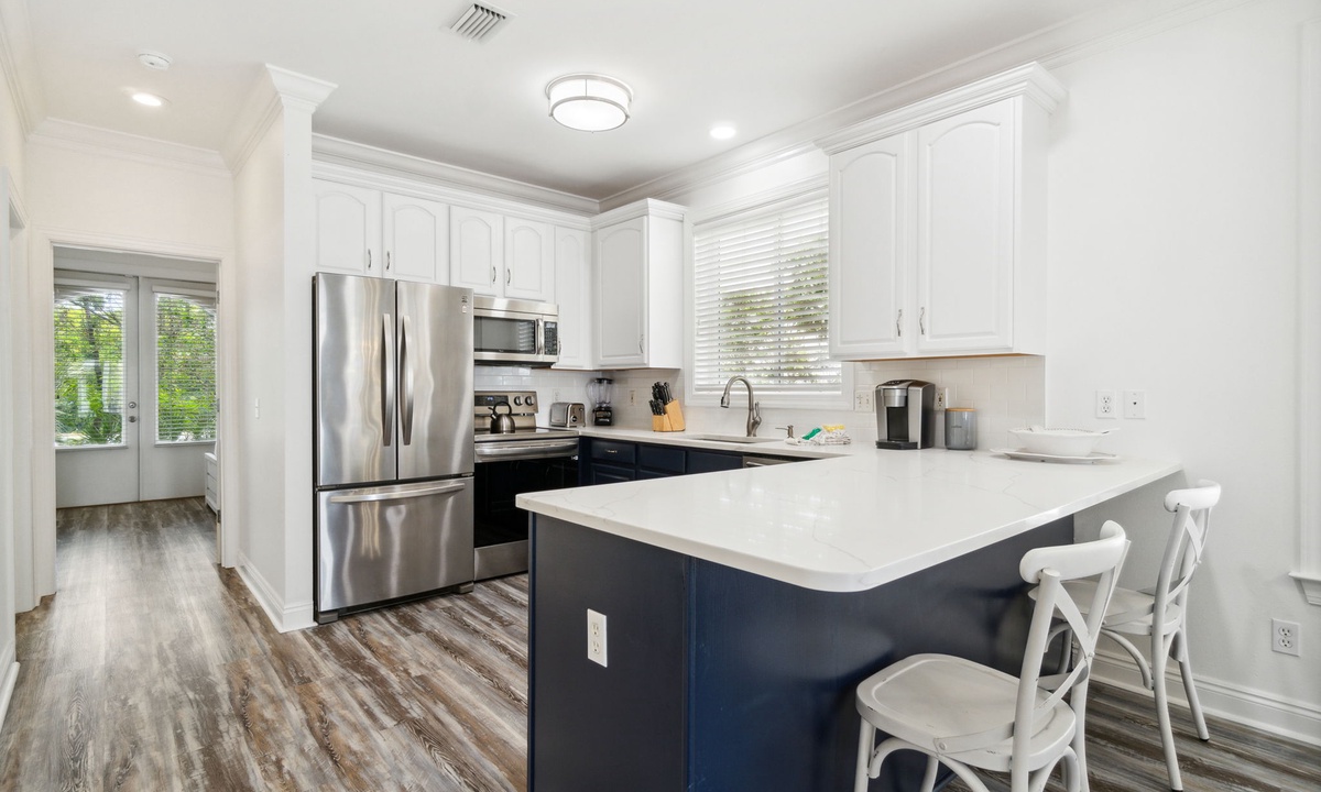 Cook up a storm in the fully updated chef’s kitchen, equipped with top-of-the-line appliances and all the cookware you need. The dining area is perfect for large groups or casual meals.