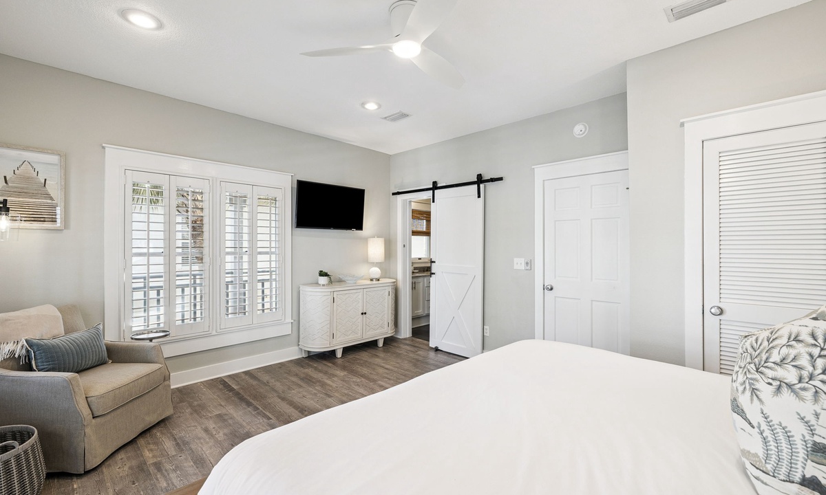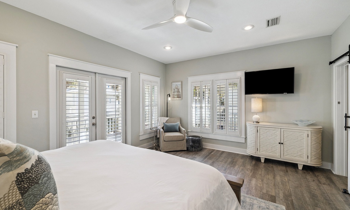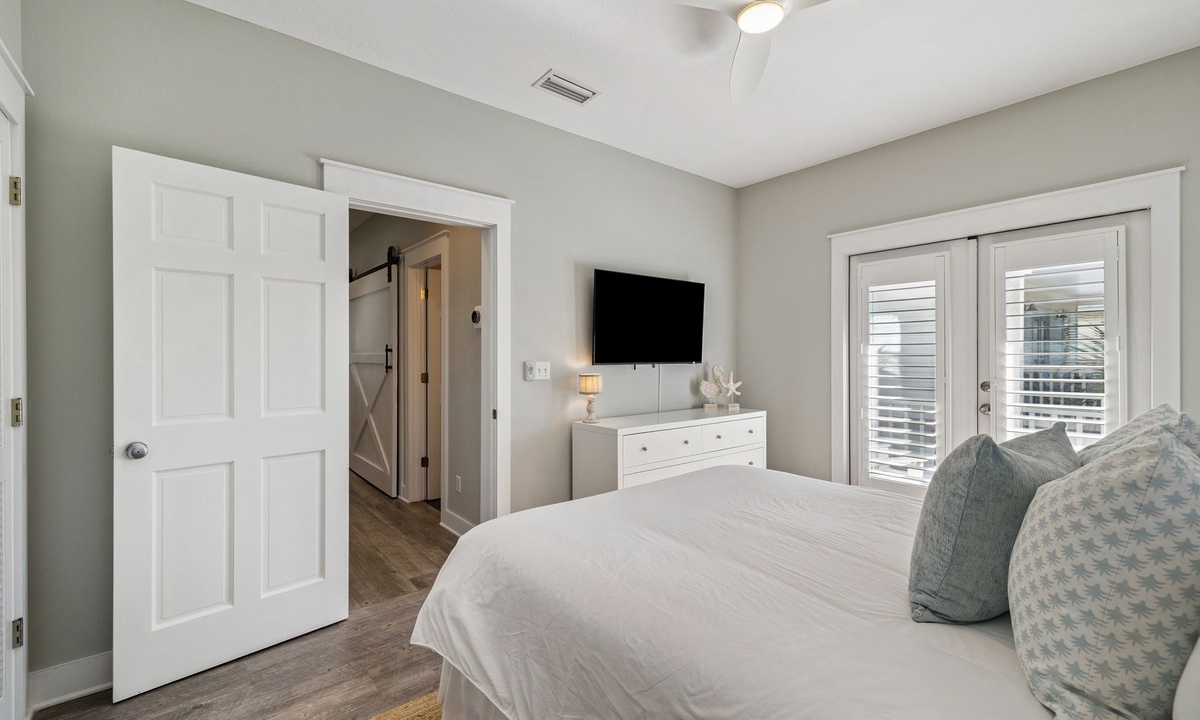 - Queen Guest Suite: Queen bed, flat-screen TV, and balcony access