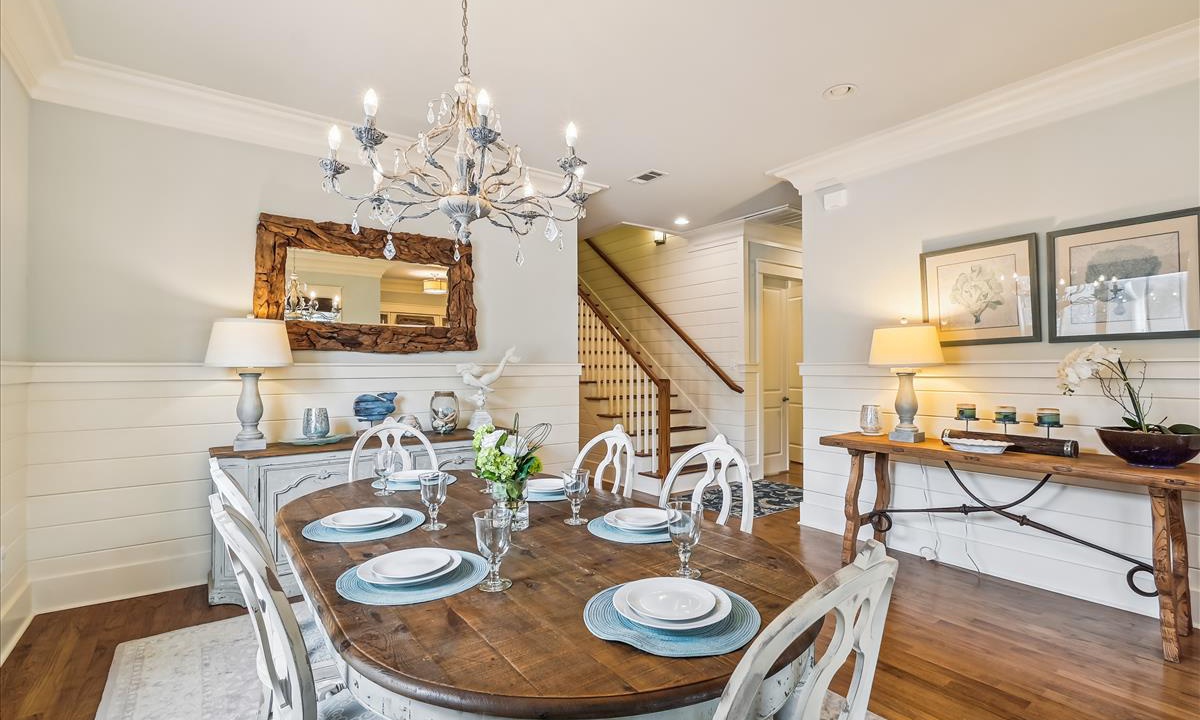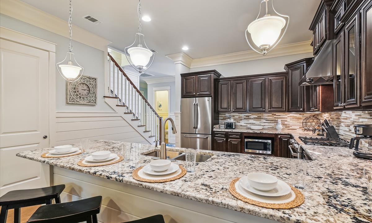 The chef's kitchen at Willows Place is a culinary masterpiece, perfect for those who love to cook and entertain in style. Featuring top-of-the-line stainless steel appliances, a spacious island with bar seating, and a beautifully positioned dining table for six, this kitchen combines functionality with elegance. Whether you're preparing a casual brunch or hosting an elaborate dinner party, every moment in this space is designed to inspire and impress.